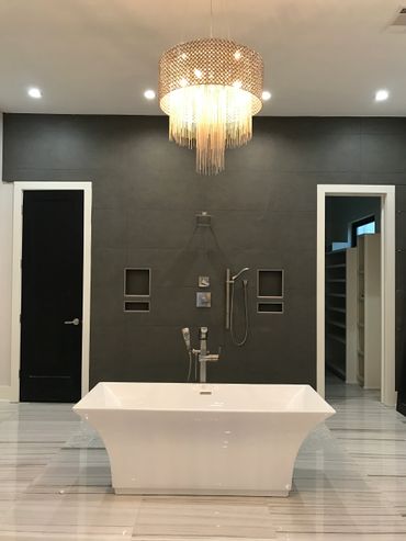 Master tub is a Pedestal free standing 36 x 67 square with wall mount tub filler