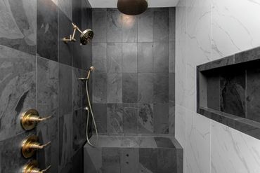 Master bath offers an oversized walk in shower with rain head and handheld. Frameless glass with this amazing space.